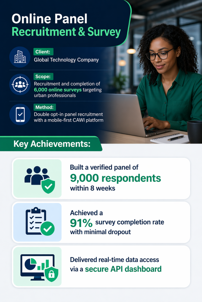 • Built a verified panel of 9,000 respondents within 8 weeks